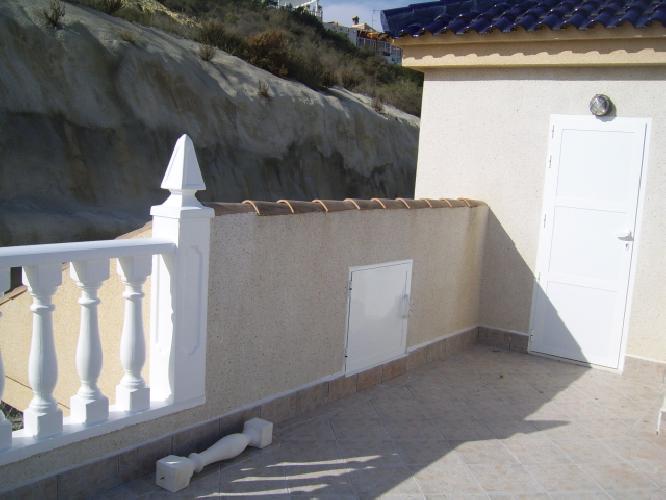 Das Haus befindet sich oberhalb vom Golfplatz in Rojales/Quesada. Es hat 2 Schlafzimmer, 1 Bad ausgestattet mit einer Dusche und WC, Wohn-/Esszimmer mit einer offenen amerikanischen Küche, alles ebenerdig. Vor dem Haus ist eine kleinere Terrasse und im Innenhof ist eine größere. Das Solarium (Dachterrasse) lädt mit seinen Sonnenliegen zum Sonnenbaden ein.Klima/Heizungsanlagen in allen Räumen.